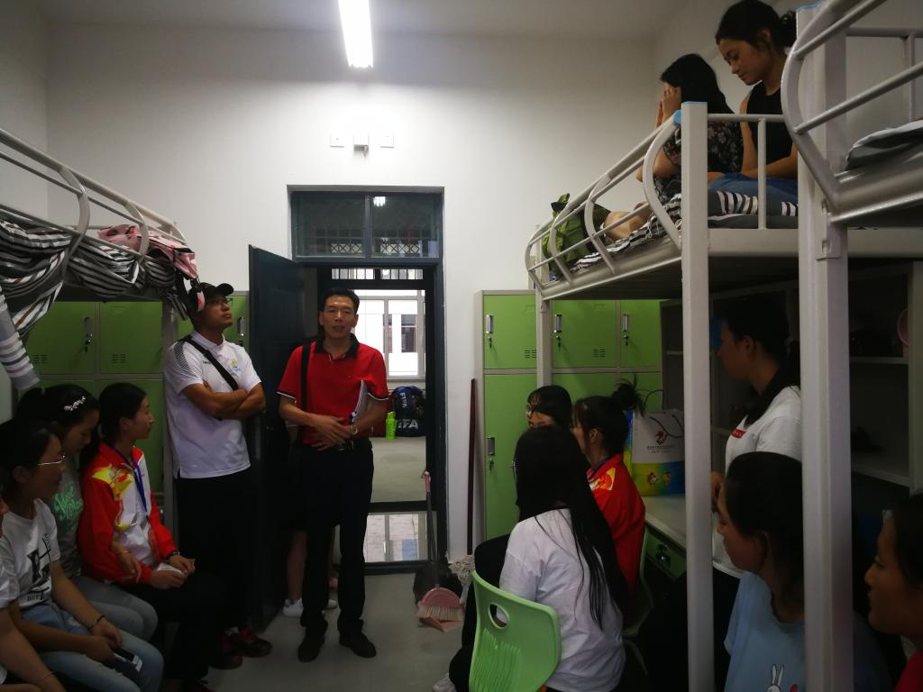 參賽隊員入住大運村后,學校代表團秘書長李小唐第一時間慰問教練員和比賽隊員。他希望全體運動員以良好的精神狀態參與到本屆大運會中去,頑強拼搏、奮力進取、爭創佳績為百年工大添彩助威。全體運動員要嚴守大會紀律,團結一致,賽出水平,賽出風格,發揚蘭州理工大學的紅柳精神,展現我校學子積極向上,陽光健康的風貌。