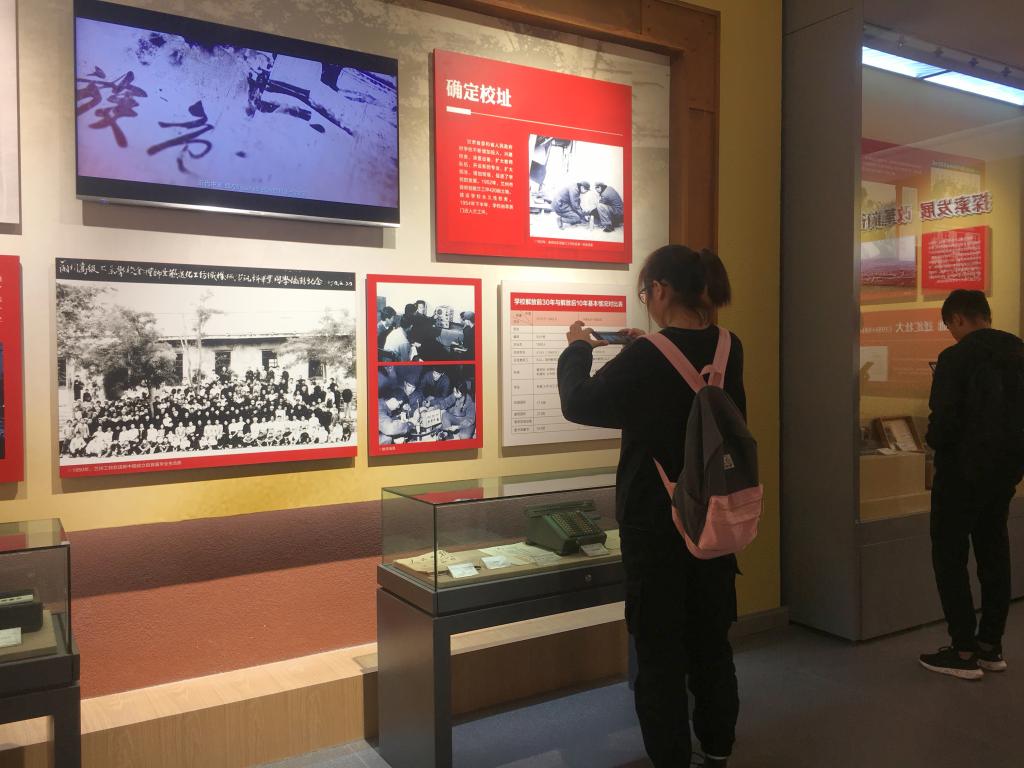 上午,在校史館講解員的帶領下,全體同學參觀百年工大崢嶸歲月歷程,向同學們講述了校史館文物收集中的感人故事。通過四個區域分別為同學們展示了蘭州理工大學不同時期的歷史、各個階段的教學成果、學校各種教學器材及優秀個人成就等。同學們討論著學校各個時期的校徽、校名,觀看著蘭州理工大學實景模型圖,深切感受百年工大精神。
