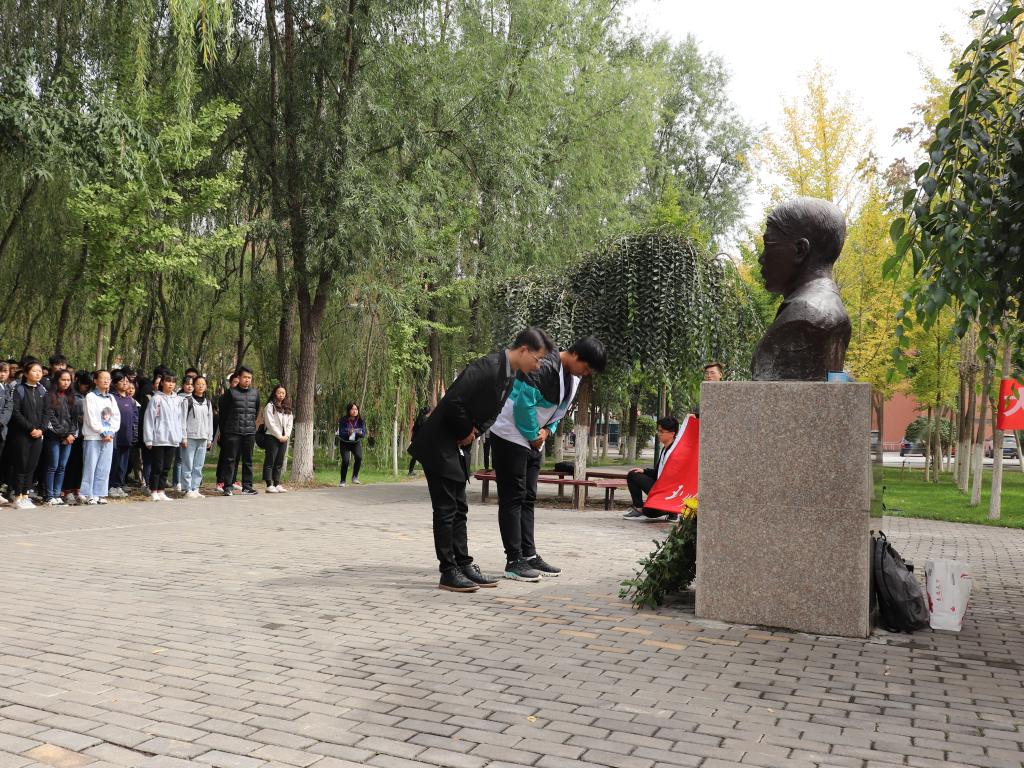 秋風(fēng)送花表哀思,玉川廣場(chǎng)祭英靈。活動(dòng)伊始,全體成員低頭默哀一分鐘,向玉川學(xué)長(zhǎng)致敬。在這一分鐘里,每個(gè)人心中默念著“魏玉川永遠(yuǎn)在我心中”。能動(dòng)學(xué)院團(tuán)委書記王寶成講述了學(xué)長(zhǎng)的事跡,簡(jiǎn)述了玉川協(xié)會(huì)的成立以及對(duì)這幾年來(lái)每一屆玉川人的辛勤付出做出了肯定,并號(hào)召大家向魏玉川同學(xué)學(xué)習(xí),以實(shí)際行動(dòng)踐行社會(huì)主義核心價(jià)值觀,不忘初心,牢記使命。最后,師生全體有序?yàn)榫热擞⑿畚河翊ǐI(xiàn)花致敬,留下了大家對(duì)玉川的尊敬與懷念。