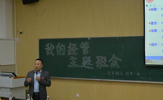 十年樹木百年樹人三尺講臺鋪錦繡。19日下午,蘭州理工大學經濟管理學院在北401教室舉辦了以“我的經管”為主題的主題班會。此次班會中,主題班會組承擔了布置教室的任務,購買班會所需用品,按時按點將教室布置好后,迎接校友的到來。主題班會后經濟管理學院熱烈歡迎海內外校友重返母校暨再上一堂課的活動在崇理樓401舉行。經濟管理學院院長張清輝教授、學院各部門相關負責人、教師代表、海內外的校友共100多人參加了活動。本次活動在院長張清輝教授關于學院的發展歷程,學科建設以及取得的輝煌成果中拉開序幕。在此過程中,各位校友與院長相交甚歡,共謀學院發展大計。張清輝教授闡述完畢學院發展概況,由各位校友選出的我們最喜愛的6位老師共同為在場的校友再次奉獻一節意味深長的教學活動。