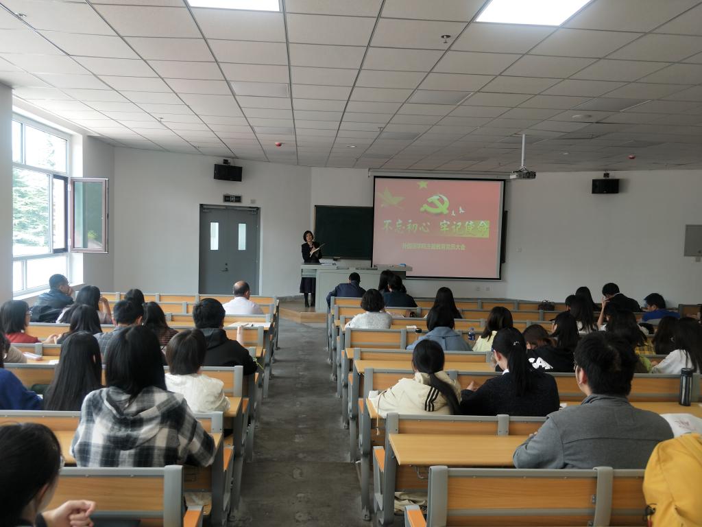 9月24日下午,外國語學院“不忘初心、牢記使命”主題教育黨員大會在蘭工坪校區圖書館T207報告廳舉行,學院黨委書記周琦、院長任育新、副院長朱景梅、全院教師黨員和學生黨員參加會議。會議由黨委副書記焦娜主持。