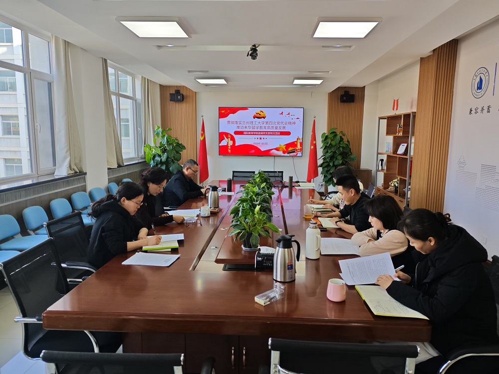 為深入學習貫徹學校第四次黨代會精神,提升全體黨員干部對學校第四次黨代會精神的領悟力。1月2日下午,國際教育學院在彭家坪校區敦雅樓A區學院會議室開展“貫徹落實蘭州理工大學第四次黨代會精神,推動來華留學教育高質量發展”主題黨日活動。學院全體黨員參加會議,會議由學院直屬黨支部書記王春梅主持。